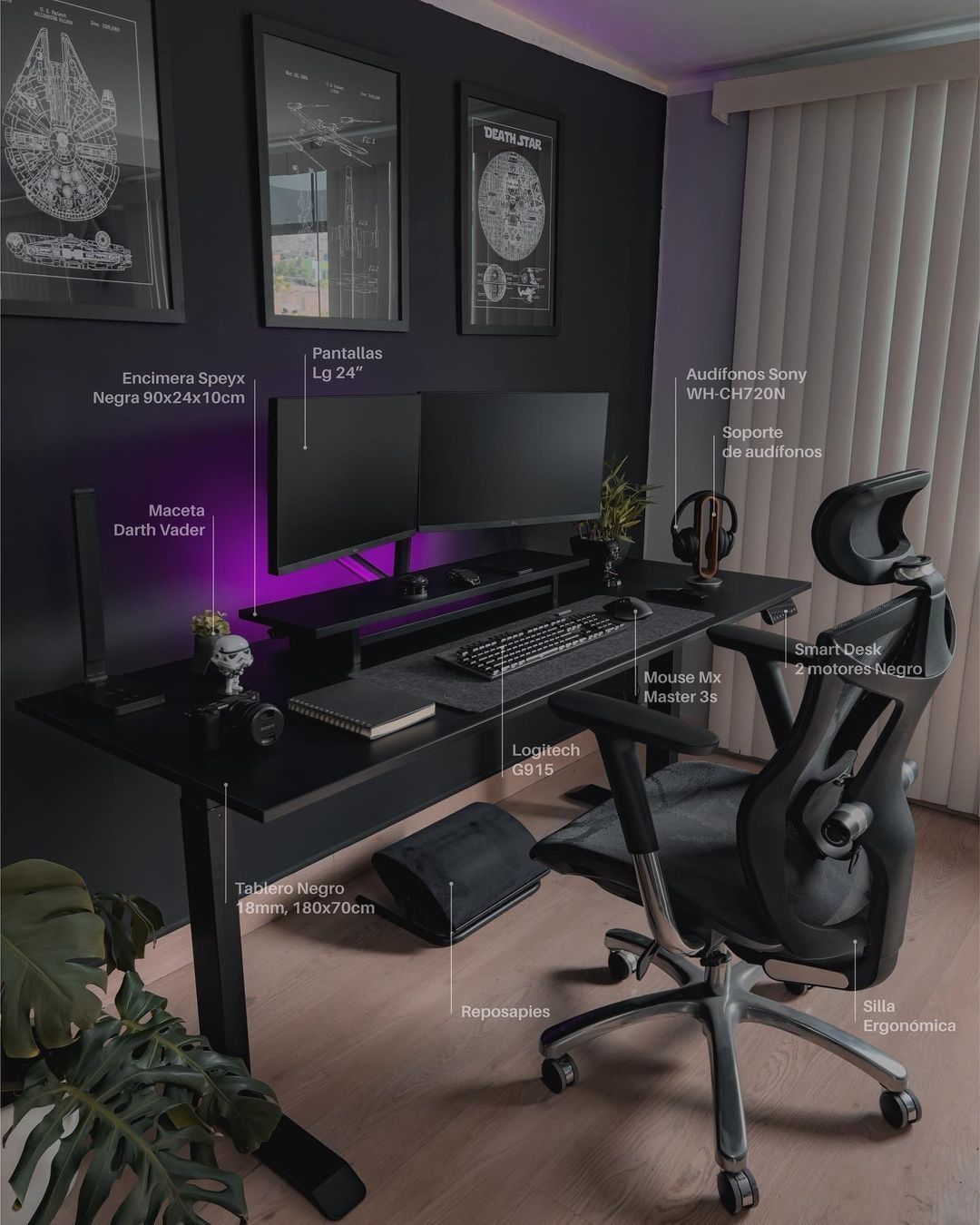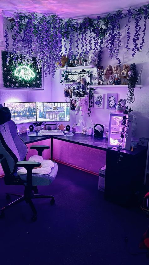 Inspiration for gamer rooms & gaming setups, featuring modern desks, immersive gaming rooms, multi screen setups, cool headphone stands and acoustic panels. Source by cristinarc572