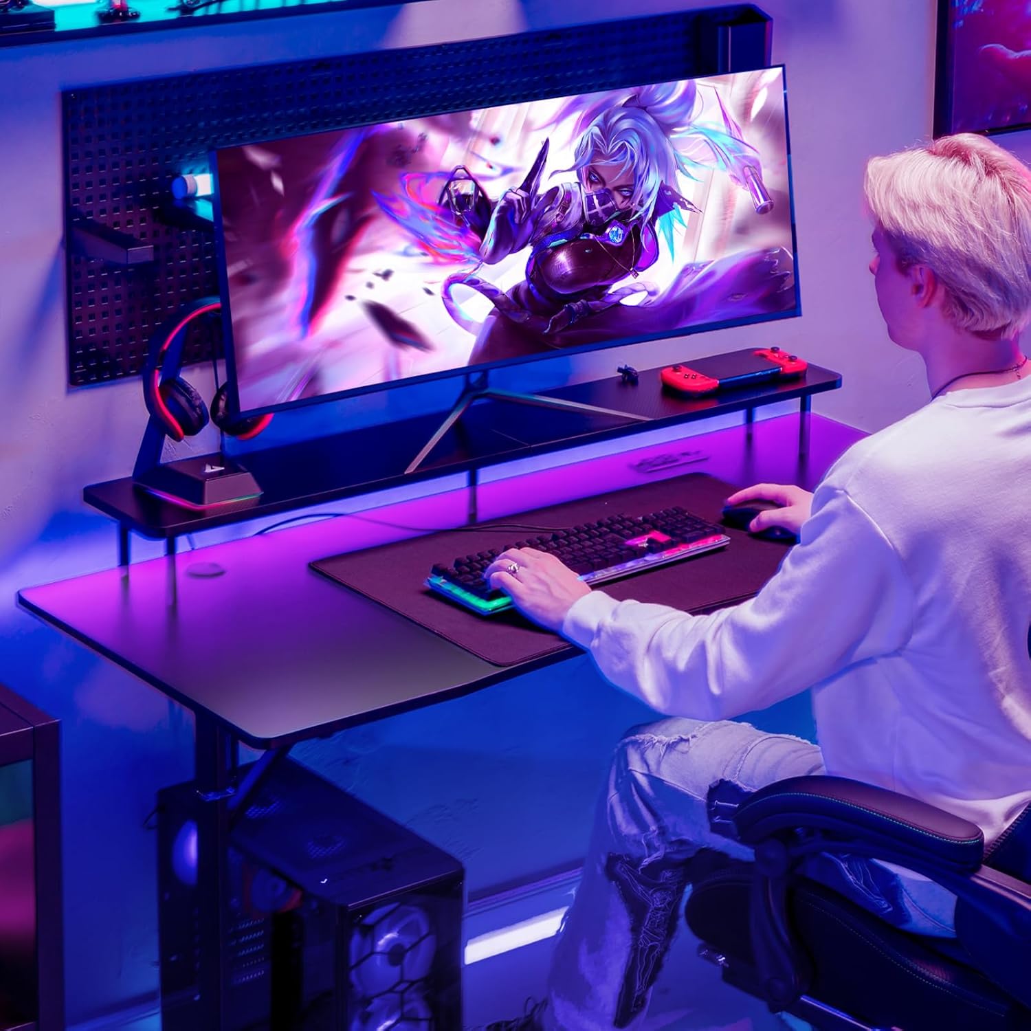 LED Lighting & Extended Mouse Pad: The gaming desk enhance your gaming atmosphere with the included LED light strip and oversized mouse pad. The gaming table mouse pad offers a smooth, responsive surface for accurate mouse control, while the vibrant LED lights bring immersive style and energy to your setup.