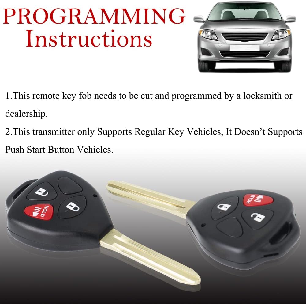 ★PROGRAMMING: This Remote Key Fob Replacement Must Be Cut and Programmed by a Qualified Locksmith or Dealership. But programming instruction links are printed outside the package for your reference. This Transmitter Doesn’t Work on Push Start Button Vehicles and it only Supports Regular Key Vehicles.