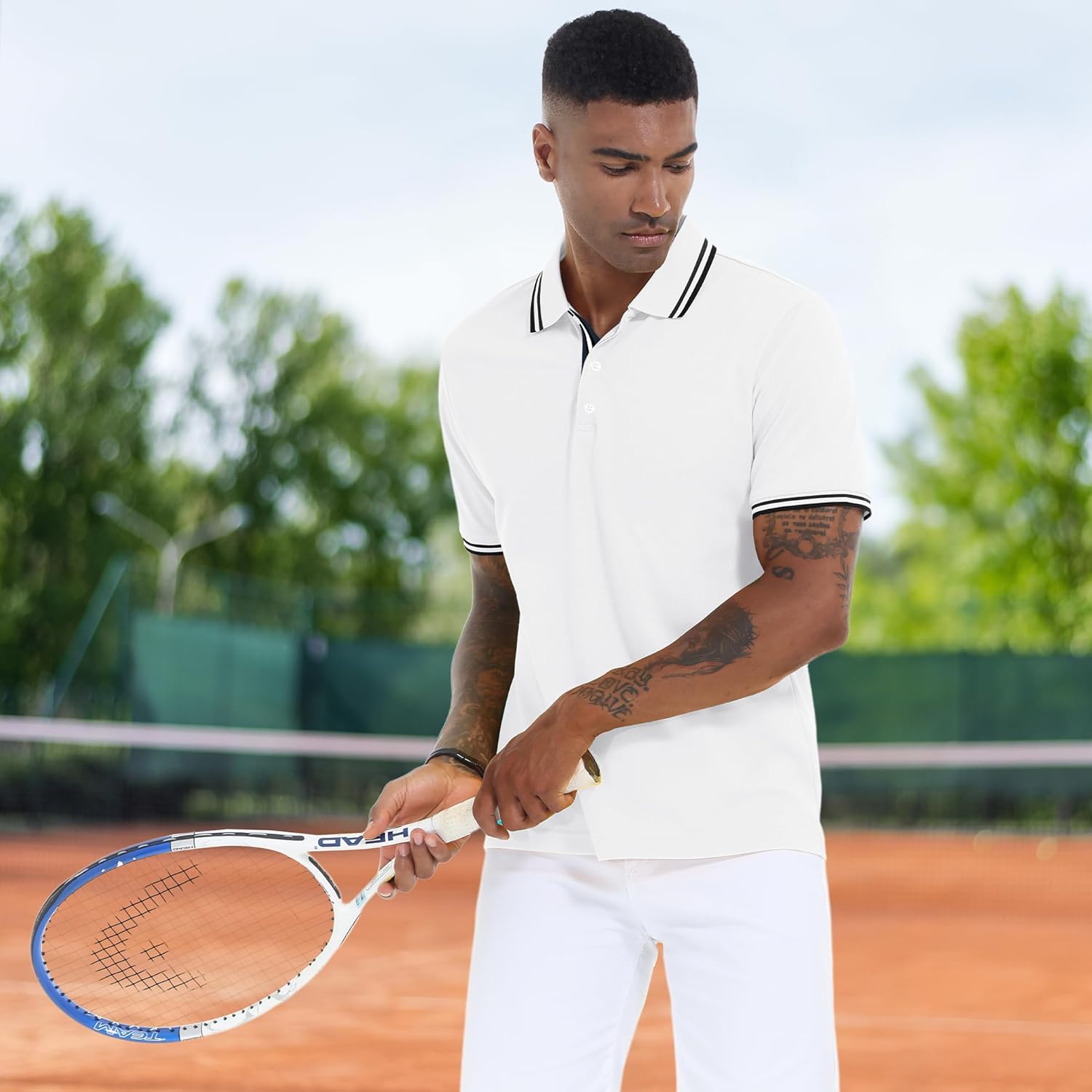 V VALANCH Mens Golf Polo Shirts Short Sleeve Moisture Wicking Golf Polo Shirts Collared Athletic Tennis Shirt